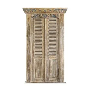 Balinese Hand Carved Teak Door With Louvre Panels TDOO-0004