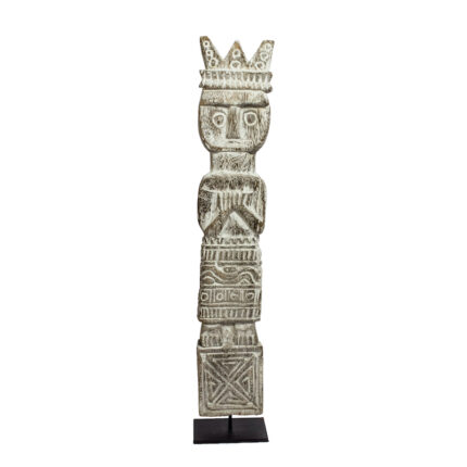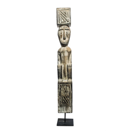 Authentic Timor Island mask on iron stand. Unique handcrafted tribal mask carved from a single wood in Timor Indonesia. Traditionally these masks were used to cover faces or worn for ceremonial purposes and to protect the home and repel bad spirits. Masks are not to be worn but to adorn houses as a decorative feature intended to make contact with the spirits of ancestors.